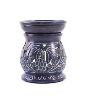 Den blå duftlampe i fedtsten er en smuk og funktionel måde at bringe velduft og rolig atmosfære ind i dit hjem. Denne oliebrænder er lavet af naturlig fedtsten, hvilket giver hver lampe et unikt udseende med individuelle variationer i farve og mønster. Den er nem at bruge; du fylder blot skålen med vand og tilsætter et par dråber af din foretrukne æteriske olie. Når du placerer et tændt fyrfadslys under skålen, opvarmes vandet langsomt, hvilket får aromaen fra olien til at sprede sig blidt i rummet.